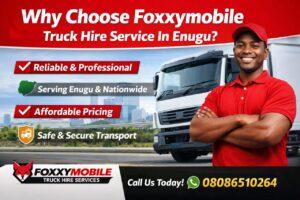 Foxxymobile Truck Hire Service is recognized as a top-rated truck hire company in Enugu, committed to safe delivery, competitive pricing, fast response, and customer satisfaction. If you are searching for truck hire service in Enugu today, Enugu relocation truck, Enugu haulage service, or interstate truck hire in Nigeria, Foxxymobile is your trusted solution.